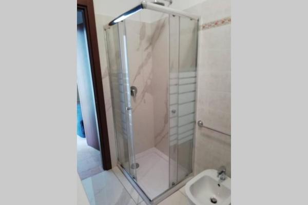 Badezimmer mit Dusche, Bidet, Fön, Waschmaschine und Gästehandtüchern.