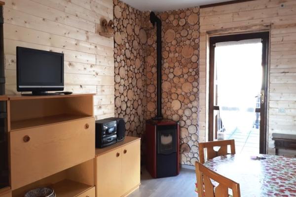 Comfort - sala pranzo con 4 posti a sedere e divano; stufa a pellet oltre a riscaldamento autonomo a gasolio, terrazza privata; cucina con uscita giardino, piccola ma funzionale con frigorifero più reparto freezer e cucina 4 fuochi dotata di forno; una camera matrimoniale e una camera doppia con letto a castello; bagno con vasca e lavatrice; ampio box per auto e deposito sci/biciclette.