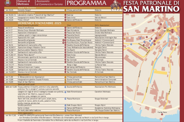 The Municipality of Moltrasio, in collaboration with Associations of the town, has organized a feast full of initiatives, good food, music and activities for children.