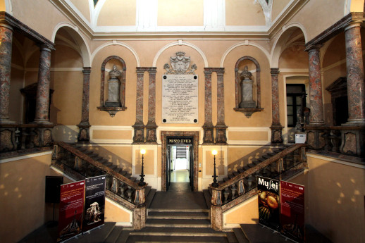 The Chapel stands on the spot where on July 29, 1900, anarchist Gaetano Bresci killed King Umberto I of Savoy at the end of a sporting event. Heir and successor Victor Emmanuel III commissioned architect Giuseppe Sacconi, creator of the Altare della Patria in Rome, to design a memorial building rich in symbolic elements, which was inaugurated in 1910. Above the column are in fact a bronze Pieta, large alabaster crosses and the symbols of the kingdom, including the scepter and crown. A mosaic-decorated chapel is carved into the base of the column, while below is a crypt in which a black marble memorial stone marks the point of the attack. The project was probably approved by the Regina Margherita. Indeed, the decorative apparatus does not lack the daisy motif, her hallmark. The same motif is repeated in the large gate by Alessandro Mazzucotelli, an internationally renowned "ornamental blacksmith," that borders the area.