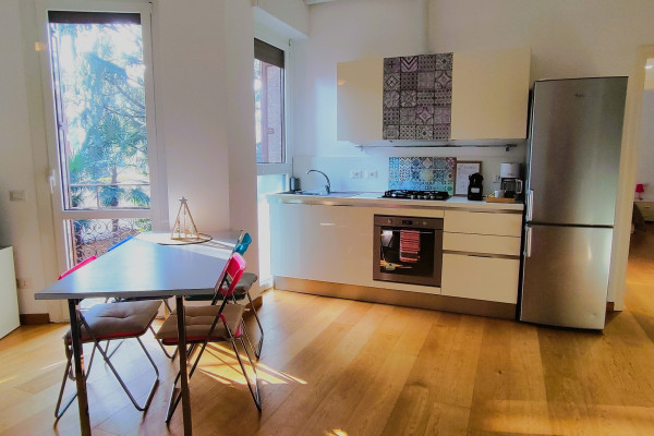 Completely and carefully renovated in 2020, it features a large double bedroom, a bathroom with bathtub, a large living room with equipped kitchen and two balconies overlooking the internal garden.