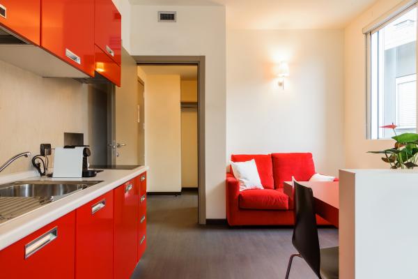Residence Osoppo is a modern, elegant and bright building, developed with lines and materials proper to the latest architectural trends to meet all the needs of both the business guest and families. Different types of apartments are available, single and double rooms, equipped with all the necessary comforts for a pleasant stay. The subway (red line 1) conveniently serves the Residence with the two stops of Gambara and De Angeli, while tram line 16 will take you to the city center. The location is excellent for reaching both the new Rho-Pero exhibition center and the three highways that connect Milan to Europe.