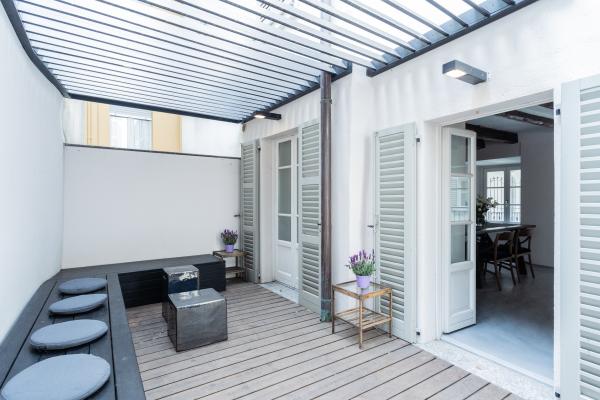 Modern design inside historical walls, spacious private terrace and all this 150m far from the Lake Como shore.