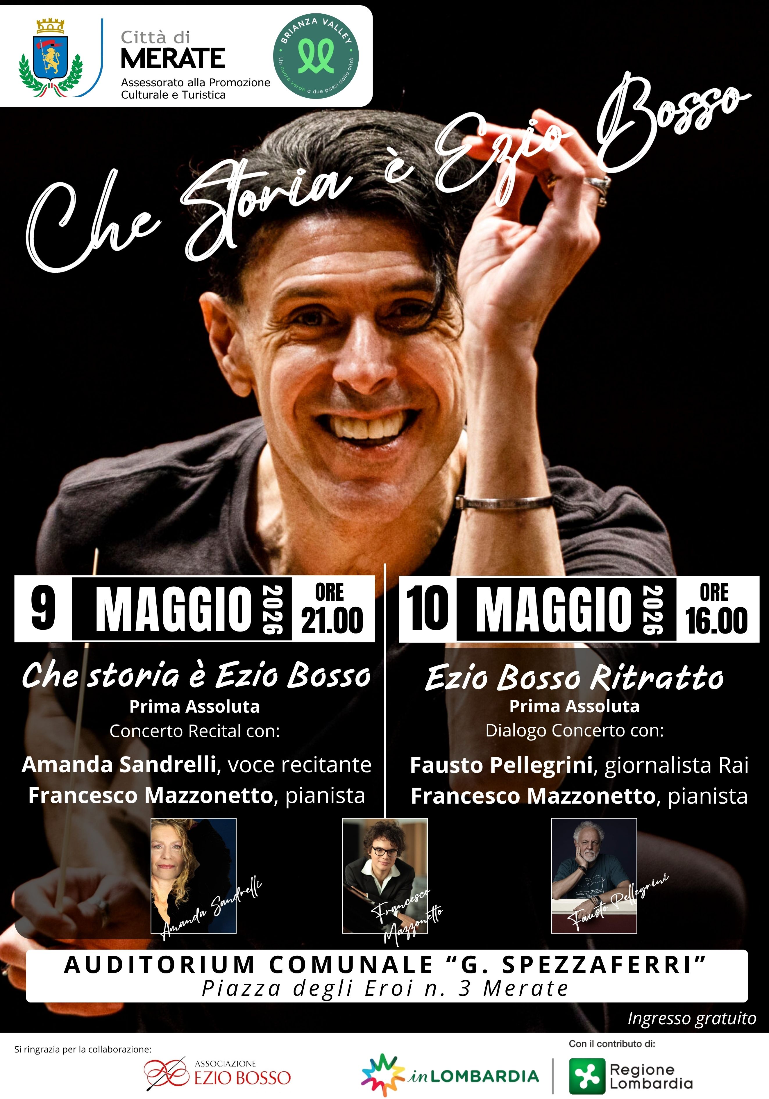L'Assessorato alla Promozione Culturale e Turistica del Comune di Merate renderà omaggio a Ezio Bosso, grande maestro e artista italiano di fama internazionale, con due appuntamenti imperdibili: