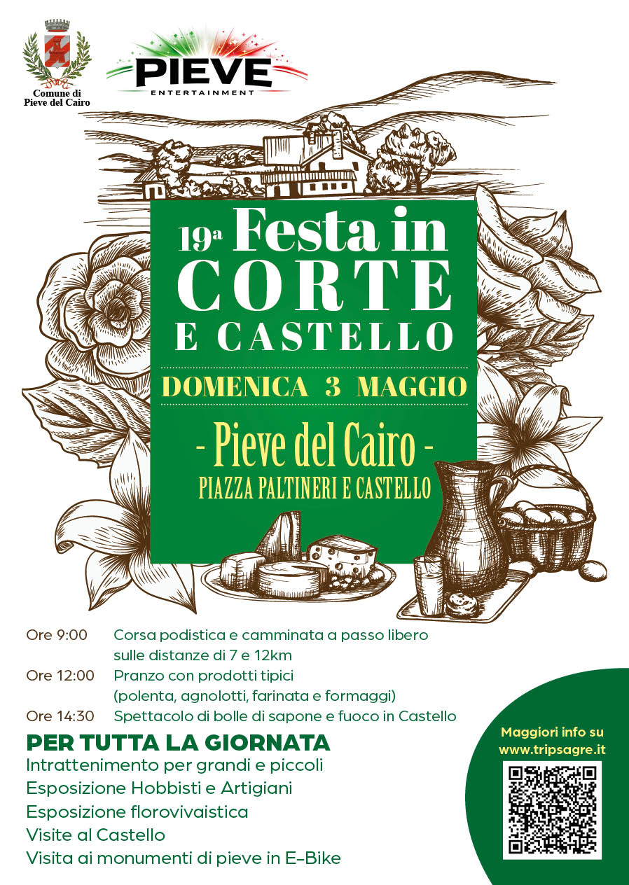 La 19ª edizione della Festa in Corte e Castello torna domenica 3 maggio 2026 a Pieve del Cairo, nel cuore della bassa Lomellina sulla sinistra del Po. Una giornata ricca di eventi, tradizioni enogastronomiche e intrattenimento per tutta la famiglia, nel borgo che custodisce uno dei castelli più grandi della provincia di Pavia.