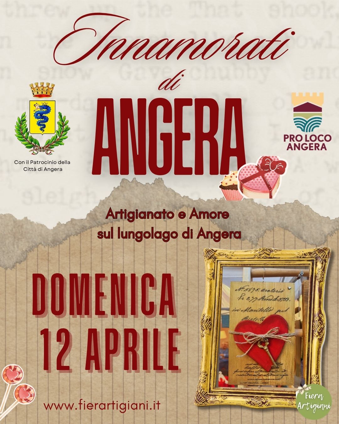 Con “INNAMORATI DI ANGERA” andranno in scena i mercatini di vero artigianato, con una selezione di espositori che proporranno creazioni originali, fatte a mano e ispirate al tema dell’amore e un piccolo angolo dedicato ai gusti e sapori del territorio. Un percorso suggestivo tra arte, manualità e bellezza, pensato per valorizzare la città e offrire ai visitatori un’esperienza autentica.