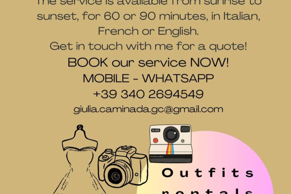 - Da Sapere: - Le sessioni fotografiche includono anche una consulenza su come prepararsi, cosa portare e altre informazioni utili per godere al meglio dell'esperienza. - Previo accordo, la sessione fotografica include l'utilizzo di abiti, compresi quelli per la maternità, per cui non devi preoccuparti di nulla, né fare acquisti dell'ultimo minuto. - Oltre a Bellagio e al Lago di Como, è possibile scegliere la location tra quelle disponibili, tra cui ville e barche, all'alba o al tramonto. - La realizzazione di un album o la stampa di un formato fotografico adatto ad un quadro, precedentemente impaginate, sono disponibili con prezzo come da listino. - 1 ora di sessione fotografica costa 250. - Il costo del servizio fotografico in barca è di 450 all inclusive e, oltre allo shooting, include 1 h 30 in barca insieme ad un conducente di fiducia. - Il costo del servizio fotografico su carta Polaroid è di 300, con stampa di 8 Polaroid.