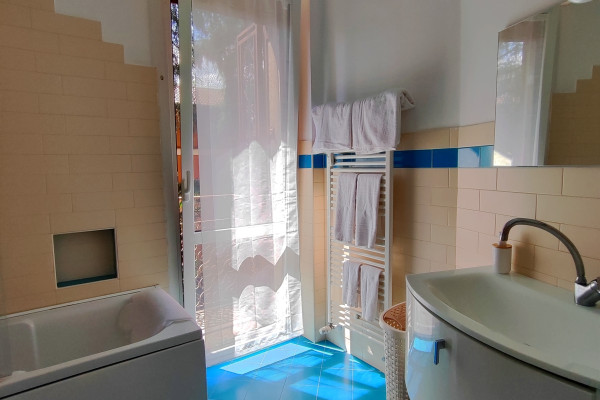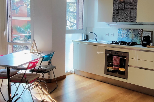 Completamente ristrutturato con cura nel 2020, presenta un’ampia camera matrimoniale, un bagno con vasca, un grande soggiorno con cucina attrezzata e due balconi sul giardino interno.