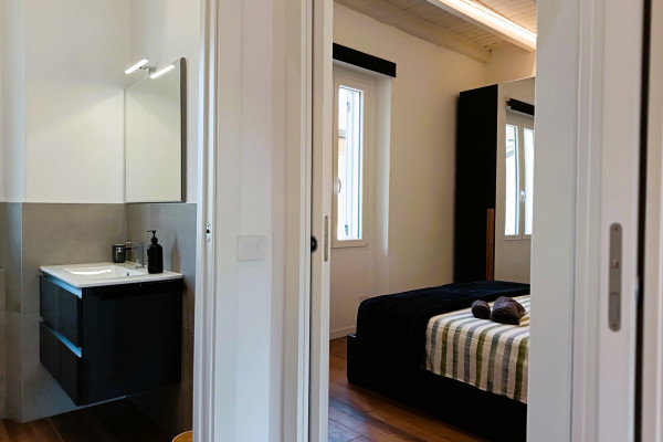L’appartamento ha l’affaccio sulla corte interna con giardino privato, garantendo privacy e silenzio.