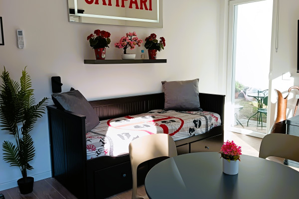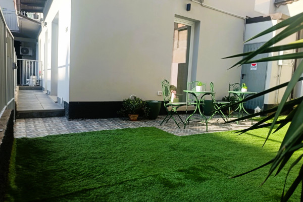 L'appartamento è stato oggetto di una completa ristrutturazione con materiali di pregio (dagli infissi, al pavimento al bagno); è un bilocale composto da una luminosissima sala con cucina a vista che ha l'affaccio sul giardino privato;