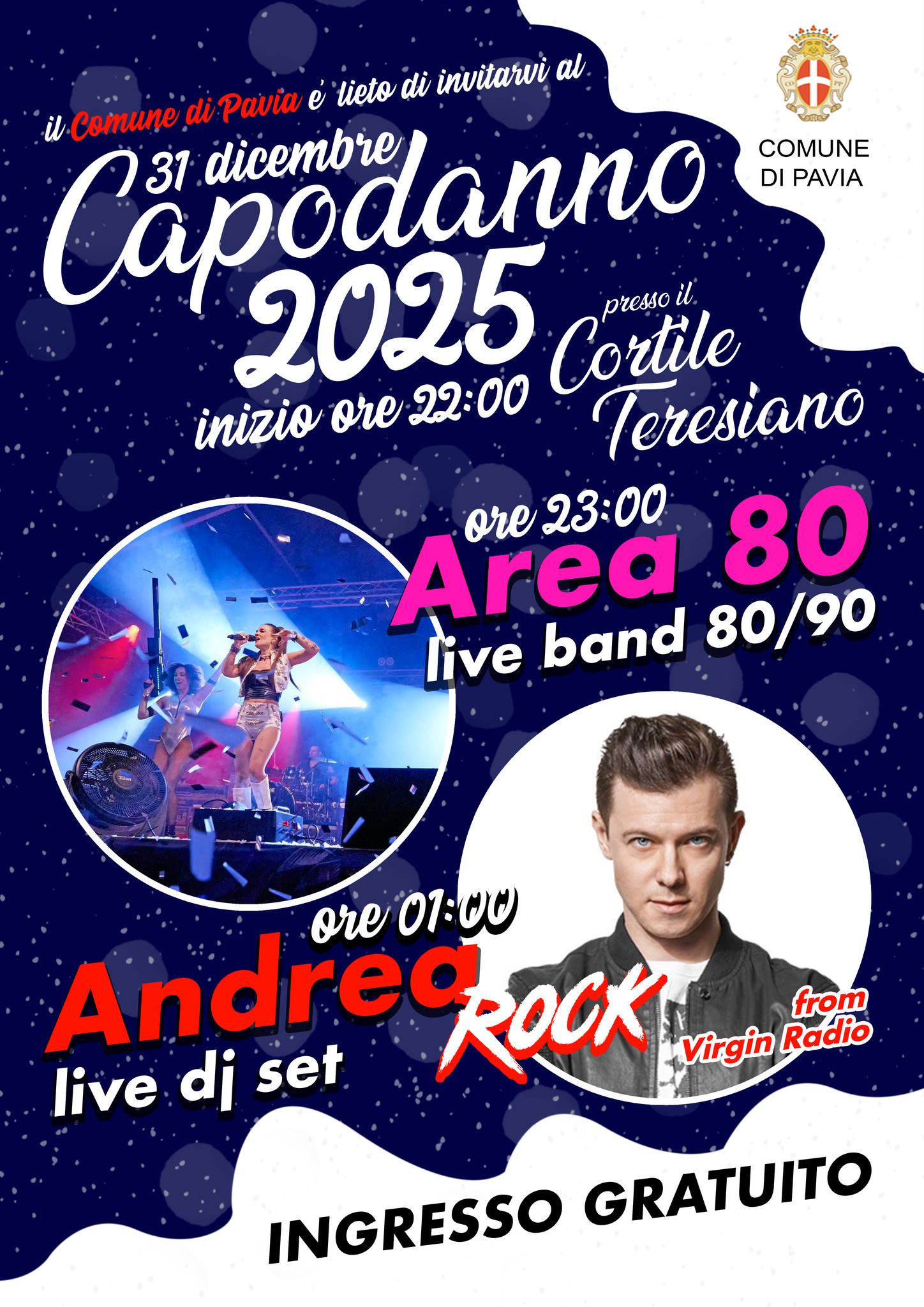 Il Cortile Teresiano si conferma ancora una volta come luogo ideale per grandi eventi a Pavia: facilmente raggiungibile, ricco di fascino storico e perfetto per accogliere una serata all’insegna della musica e dell’energia. L’evento rappresenta un’occasione unica per salutare il 2025 e dare il benvenuto al 2026 in un clima di festa aperto a tutti.
