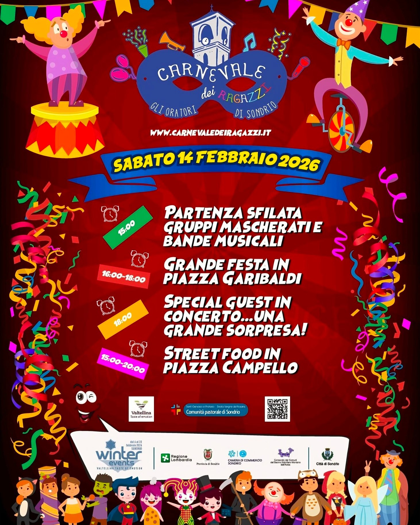 Gli oratori di Sondrio organizzano il Carnevale dei ragazzi sabato 14 febbraio 2026.