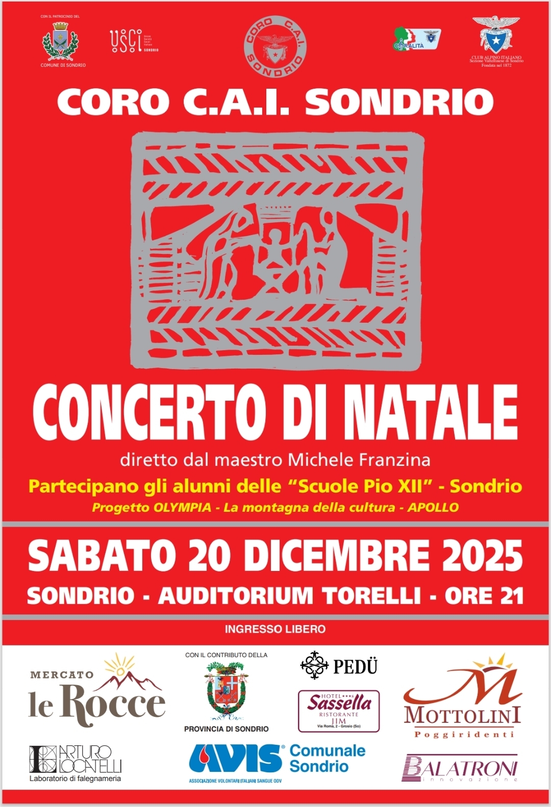 CONCERTO DI NATALE coro C.A.I. di Sondrio diretto dal M° Michele Franzina, canteranno insieme anche gli alunni della "Scuola Pio XII".