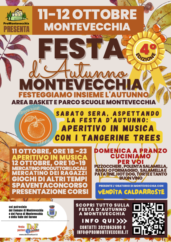 11 e 12 ottobre a Montevecchia avrà luogo la quarta edizione della Festa d'Autunno, un weekend interamente dedicato alle tradizioni, ai sapori e al divertimento, che si terrà nell'area Basket e Parco scuole.