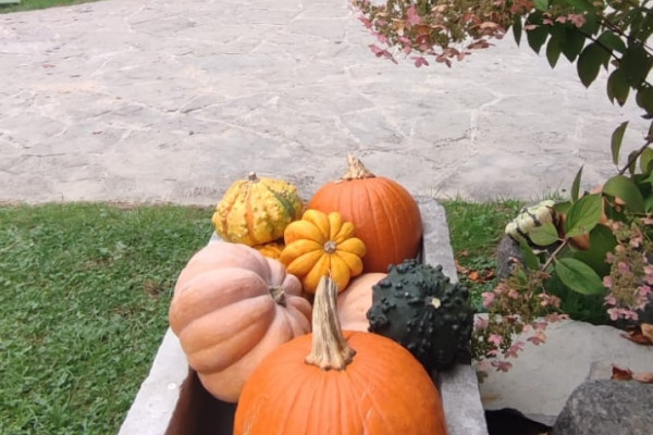 Attraversiamo il giardino ornamentale di Villa Carlotta fino ad arrivare al campo di zucche allestito nella parte alta del parco e scopriamo la bellezza dell'autunno.