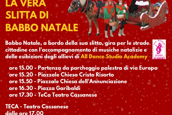 Torna anche quest'anno la Slitta di Babbo Natale per le vie della città con l’accompagnamento di musiche natalizie e delle esibizioni degli allievi di All Dance Studio Academy.