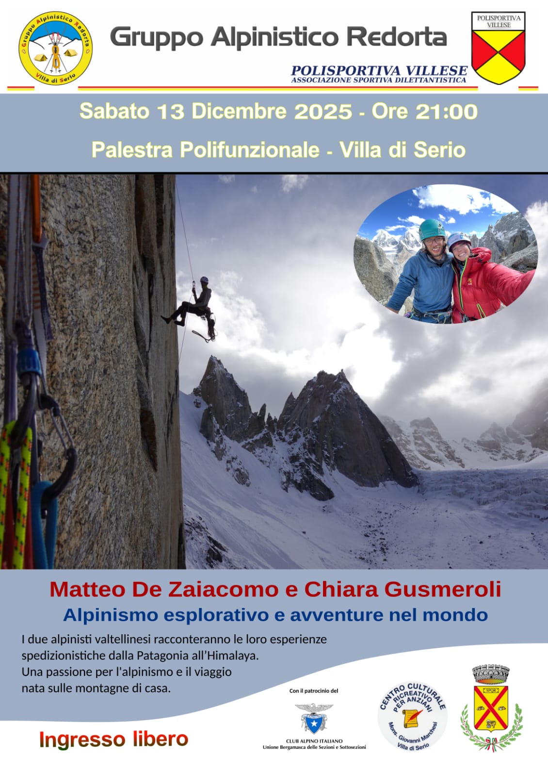 I due alpinisti valtellinesi racconteranno le loro esperienze spedizionistiche dalla Patagonia all'Hymalaia. Una passione per l'alpinismo e il viaggio nata sulle montagne di casa.