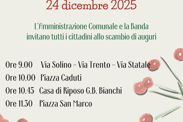 L’Amministrazione Comunale e la Banda invitano tutti i cittadini allo scambio di auguri