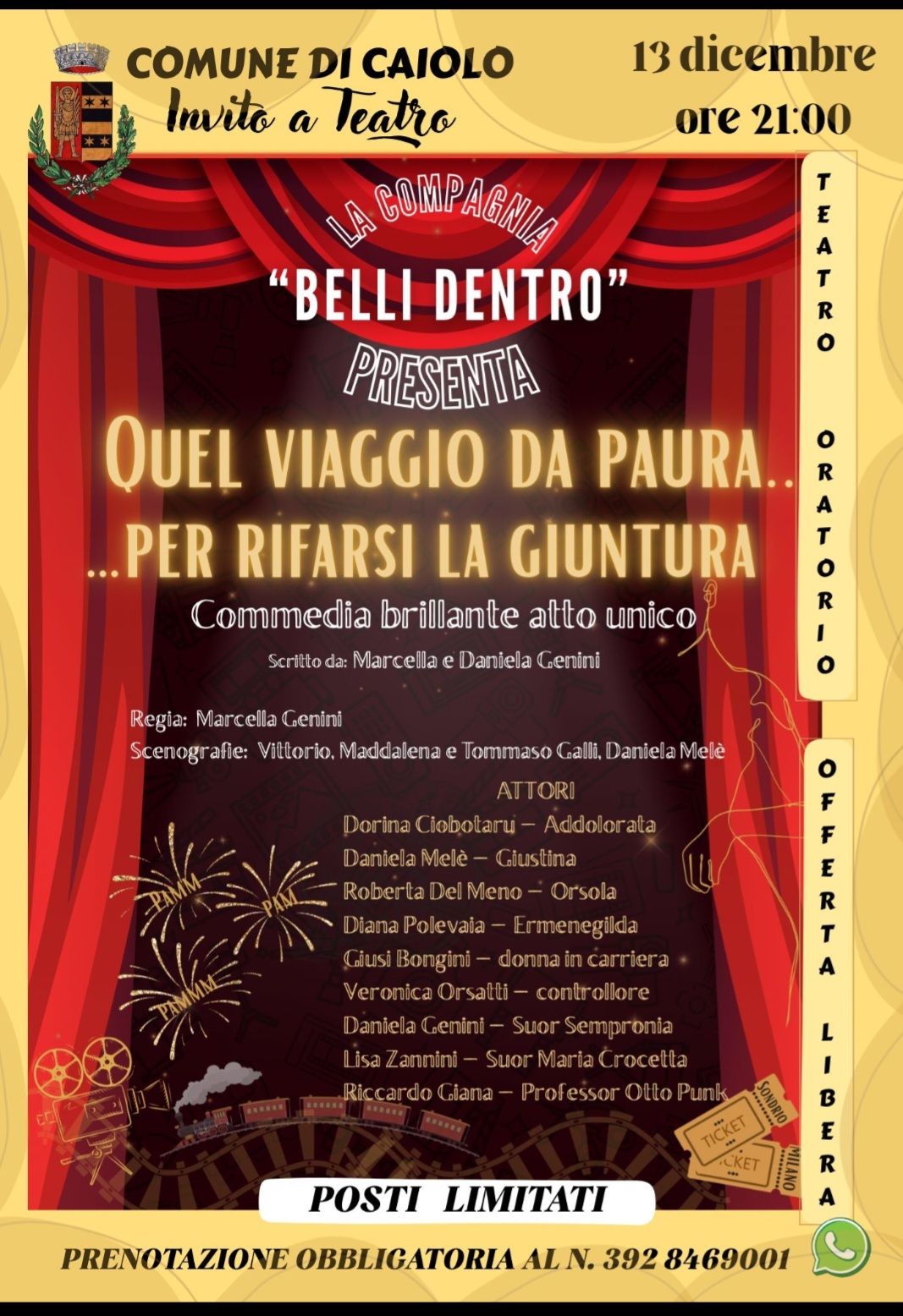 Prenotazione obbligatoria al 3928469001
