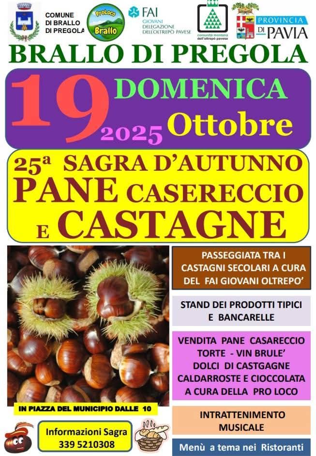 Per chi desidera unire il gusto all'aria aperta, la Sagra offre un'occasione unica: la Passeggiata tra i Castagni Secolari, a cura del FAI Giovani Oltrepò Pavese. Un'escursione leggera e suggestiva per ammirare il foliage e scoprire la ricchezza naturalistica della zona, circondati da alberi monumentali che raccontano secoli di storia.
