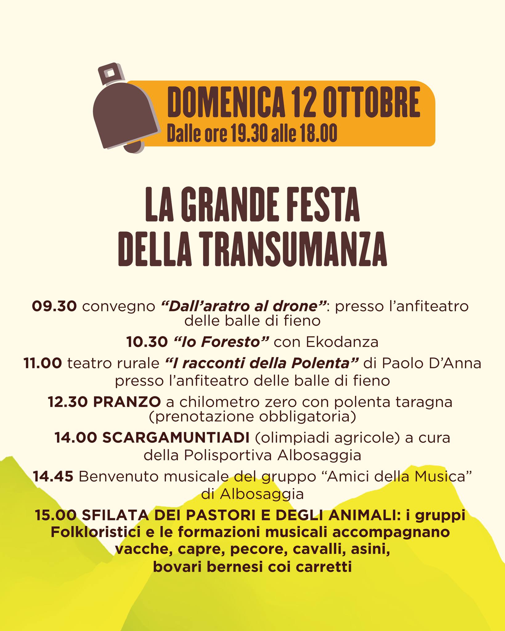 pranzo tipico, mercatini, tradizioni, la sfilata degli animali e dei gruppi folkloristici.