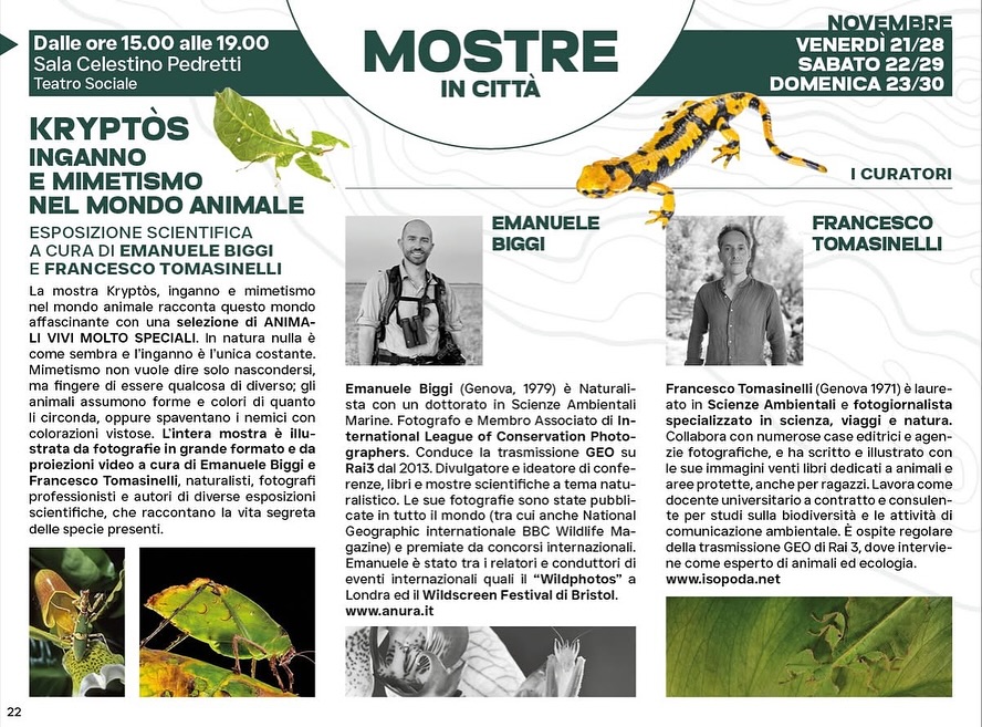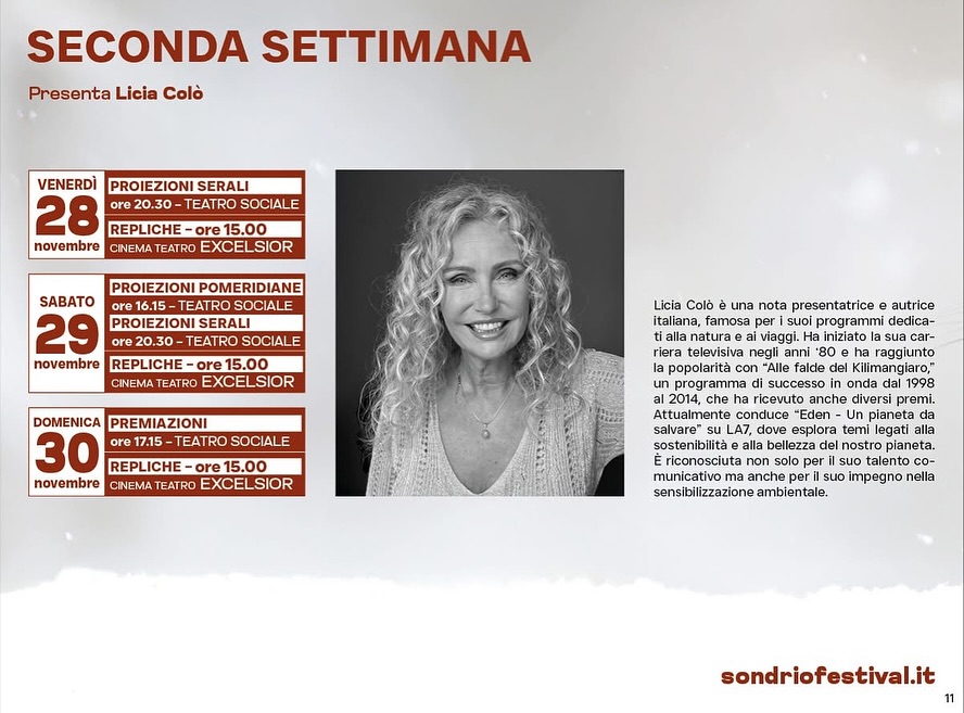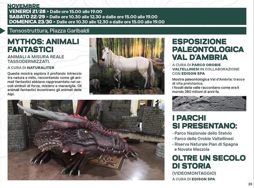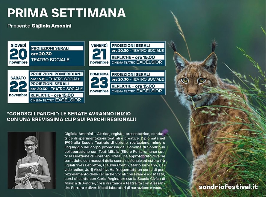 Altri appuntamenti: le iniziative: “Mountain Echos” di Yuval Avital e “In pista per la Terra” elgate alle Olimpiadi - teatro con “Le lupe” di Consuelo Orsingher e Gigliola Amonini, per la letteratura sono previsti eventi nell’ambito del progetto Interreg “Valleys4Action” - mostre “Kriptòs”, “Le aree protette e i loro animali fantastici” - “Val d’Ambria: tracce di vita preistorica” - concerto “La Moldava, un fiume di note” del Coro di Clarinetti della Valtellina. - Forum Regionale 2025 dei parchi lombardi e i “Pomeriggi Family”, organizzati dagli studenti dell’Istituto Saraceno Romegialli di Morbegno.