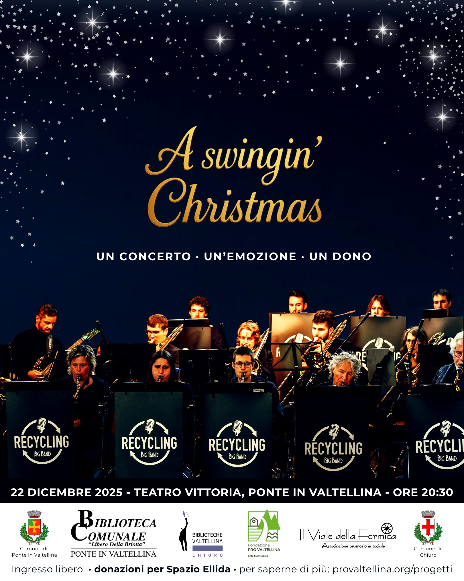un Natale a suon di jazz con la Recycling Big Band di Brusio, concerto di Natale organizzato dalla biblioteca comunale di Chiuro, in collaborazione con la biblioteca "Libero della Briotta" di Ponte in Valtellina: