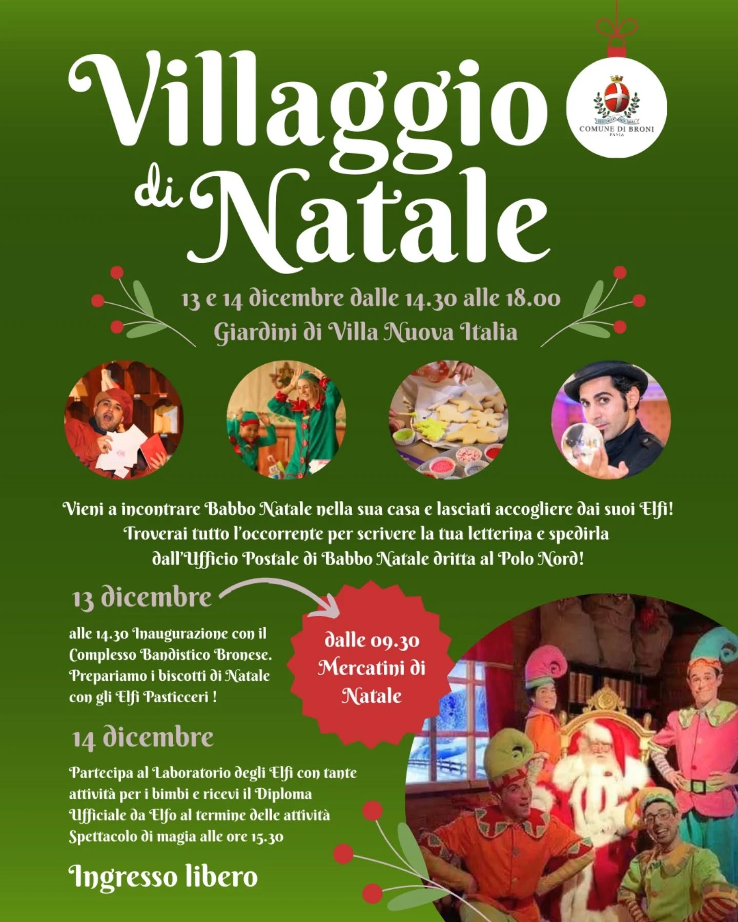 Organizzato in collaborazione con il Comune di Broni, questo evento è l'occasione ideale per vivere la magia delle feste in compagnia, con due pomeriggi ricchi di attività, spettacoli e incontri pensati appositamente per le famiglie e i più piccoli.