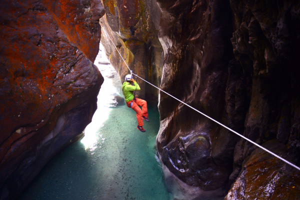 Gola UP! è un percorso alpinistico tracciato nelle forre del Torrente Scerscen.