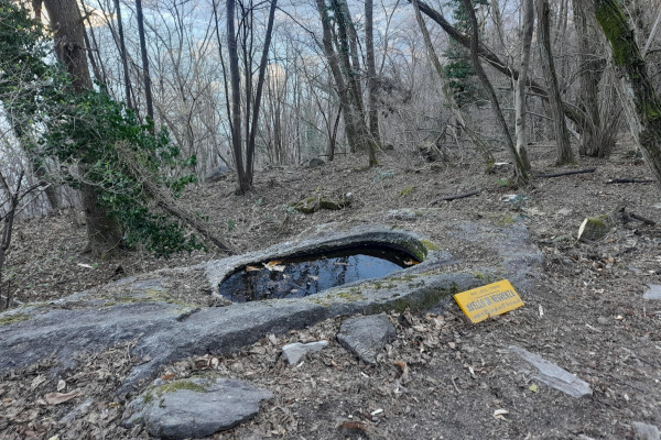 Si prosegue per ritornare al borgo, dove si gira a sinistra in direzione Piazzaga per imboccare la scalinata che sbuca poi sulla carrozzabile in cemento e pietra. Si prosegue lungo la strada principale per 900 m, prima di incrociare il sentiero che a sinistra si stacca ed accorcia il percorso per lo storico borgo di Piazzaga, sede dell’omonimo crotto. Si prosegue in discesa oltre gli edifici, imboccando la scalinata che inizia a scendere ripida per 500 m fino ad incrociare il sentiero dei massi avelli, un breve percorso ad anello di 1,6 km che attraversa un’area ricca delle misteriose tombe a forma di vasca scavate nei massi erratici e orientate generalmente in direzione est-ovest. Queste sepolture, molto probabilmente destinate a personaggi di alto rango, costituiscono una singolarità della zona che va da Como al Canton Ticino, dalla Brianza alla Valtellina. Di problematica datazione, i massi avelli vengono attribuiti dagli ultimi studi all’arco temporale tra la fine del V secolo e il termine del VI secolo d.C.