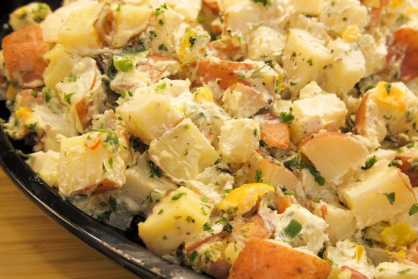 L’insalata di cappone alla lombarda, servita in vaschette individuali è un piatto estivo da mangiare freddo. Ma soprattutto è un piatto unico, che combina carne di pollo (lessato o arrosto) e verdure (patate lesse, sedano, lattuga, cipolle dorate in padella…), legati da una leggerissima maionese.