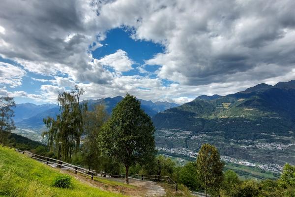 Il sentiero corre pressoché pianeggiante a metà montagna, a quota 900 metri, attraverso il Parco delle Orobie Valtellinesi, dove si alternano splendidi scorci delle Alpi Retiche, piccoli torrenti e angoli incontaminati di bosco.