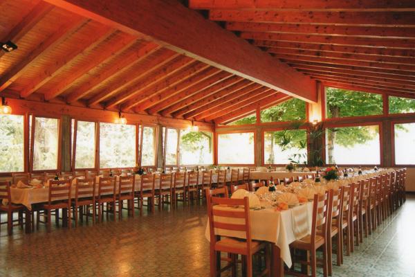 La cucina è tipica della Valle Camonica con largo uso di erbe aromatiche selvatiche, paste fresche e carni alternative, oltre che salumi e formaggi locali. Si presta ottimamente per banchetti, cerimonie, riunioni e comitive di pulmans. La capienza massima è di 200 posti.