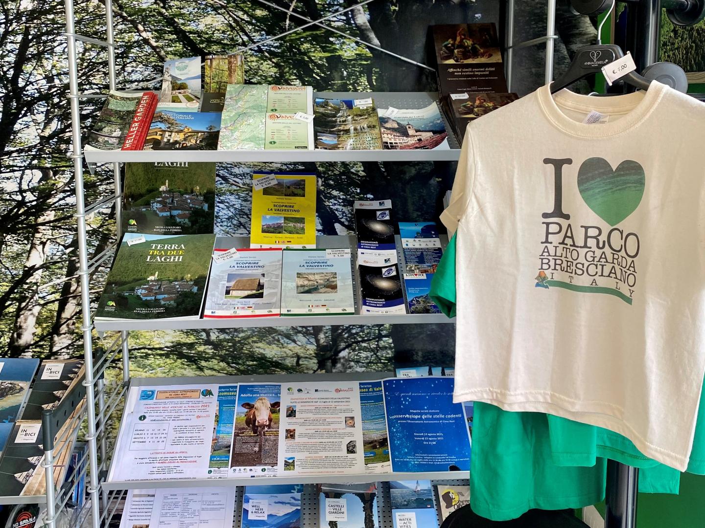 Presente bookshop con carte dei sentieri, pubblicazioni sul territorio valvestinese e vendita di prodotti locali souvenir del territorio quali fagioli e miele della Valvestino. Punto di ricarica e-bike (segue l'apertura dell'ufficio).
